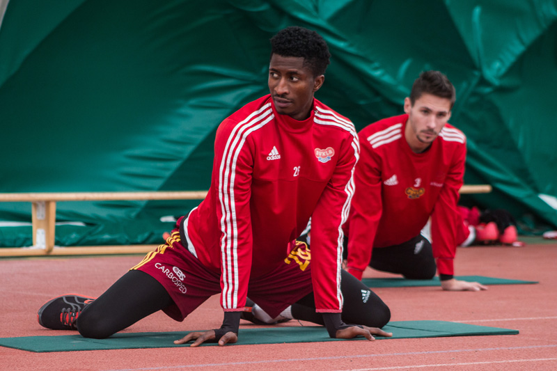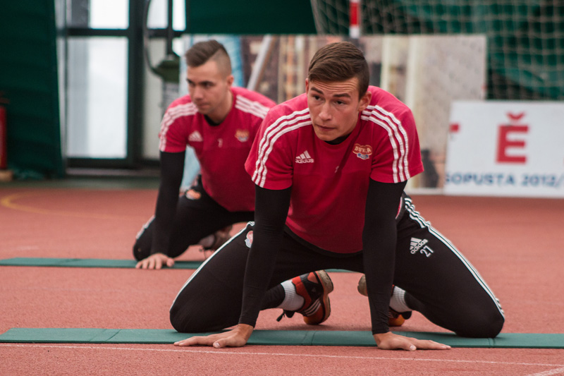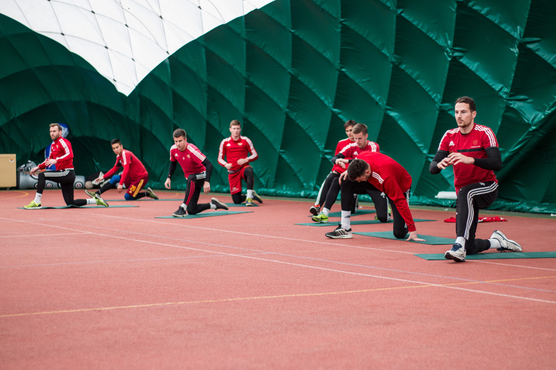 První tréninkový den strávilo mužstvo v hale a na tréninkovém hřišti s umělou trávou.