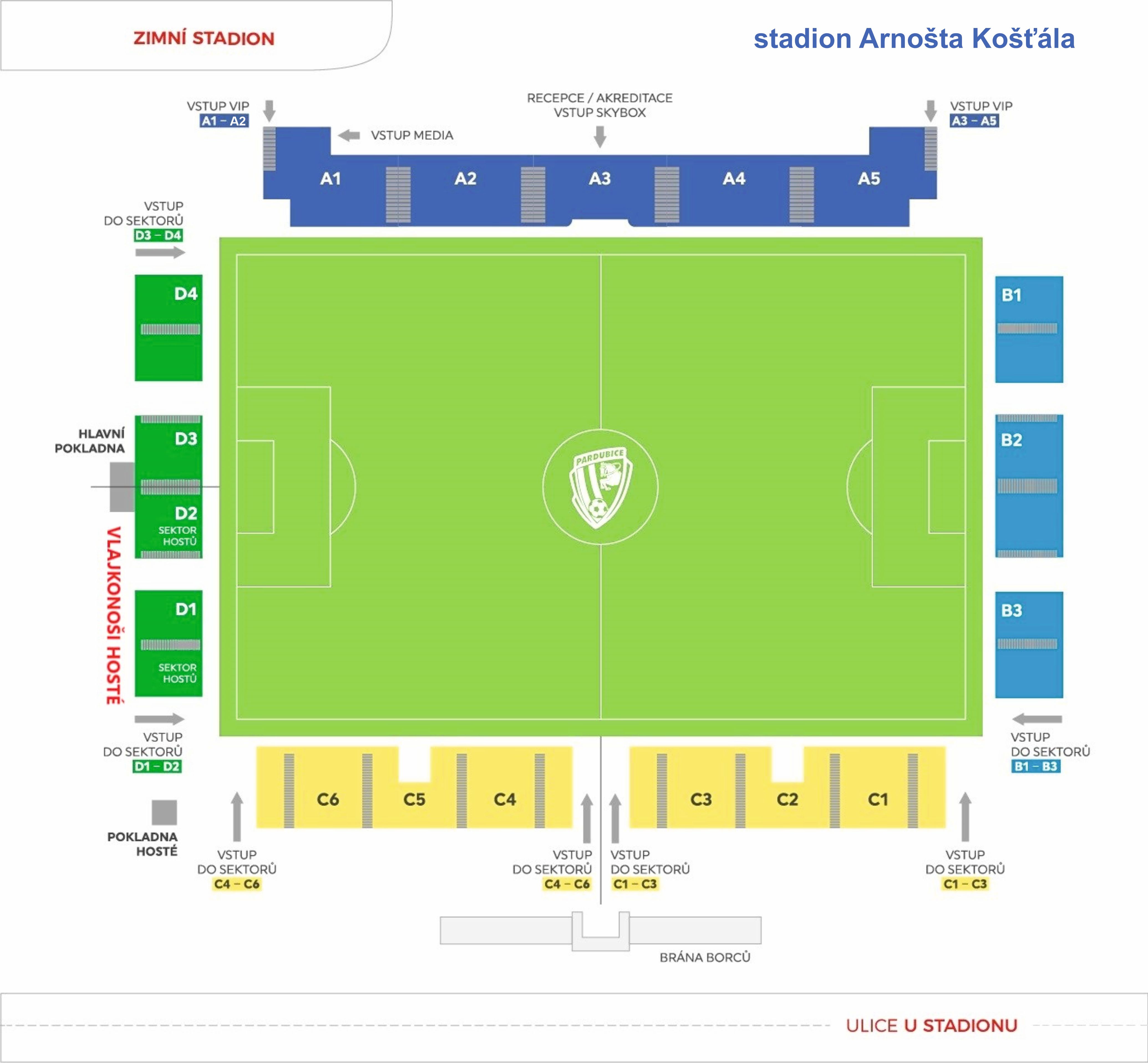 - Lístky do Pardubic se dají kupovat pouze online, případně bude u hostujícího sektoru bude umístěna cedule s QR kódem odkazujícím na prodejní odkaz