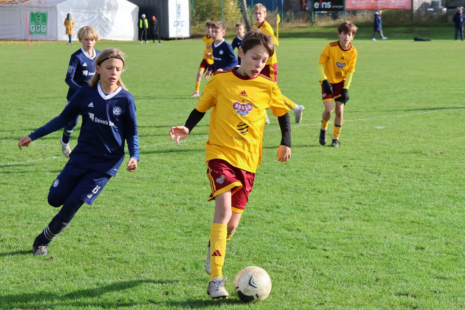 V neděli 19.10 jsme se vydali na turnaj do německého Chemnitzu kde jsme přijali pozvání od domácího týmu Chemnitzer FC. Jednalo se o turnaj 7+1 kde se představili týmy z Berlína, Chemnitzu a Drážďan a Norimberku. Netušili jsme co nás v Německu čeká a byli jsme příjemně překvapeni. Čekal na nás malebný tréninkový areál se dvěma travnatými plochami a sportovní halou a velmi pěkným zázemím pro domácí mládež. Hřiště byli chytře rozdělené pro možnost velkého i malého fotbalu žáků a přípravek. Kluci se na turnaj hodně těšili a nemohli se dočkat na první zápas. Ten se nám povedl a prvního soupeře z Norimberku jsme dokázali porazit 4:0. Mezitím se na dalších hřištích odehrávali další zápasy. Velmi mile nás úroveň domácích hráčů Ve druhém zápase nás čekal tým FC Erzgebirge Aue jehož A tým pravidelně hrával 2.bundesligu. Zápas byl velmi vyrovnaný a rozhodl ho náš jediný gól. Ve třetím souboji nás čekala Drážďanská akademie Borea Dresden s velmi vyspělými hráči i tento zápas kluci zvládli a mohli se těšit na další. První remízu přinesl první souboj s domácím Chemnitzer FC. Domácí tým hrál velmi dobře a kluci museli hodně zabrat, aby zápas neprohráli. Dalším soupeřem byl regionální tým FV Blau-Weiß-Röhrsdorf působící také ve městě Chemnitz. Po té nás čekal tým ze čtyřmilionového Berlína, SC Staaken, který měl v týmu několik hráčů tmavé pleti. VFC Plauen byl další ze soupeřů na které se nám dařilo a dokázali mu vstřelit 3 branky. Jediný bezbrankový zápas jsme odehráli proti akademii SFK Dresden. Celkové vítězství jsme stvrdili výhrou nad druhým domácím týmem 1:0. I když jsme nehráli proti úplně věhlasným soupeřům každý tým předváděl velmi dobrou hru a byl pro nás i inspirací. Velmi nás těšilo že všechny týmy chtěli hrát fotbal, byli velmi dobře vybaveni technicky, nebyla jim cizí hra 1v1 a předváděli německý důrazní fotbal. Zápasy vedli velmi mladí rozhodčí, kteří se snažili všechny situace vysvětlovat. Kluci se snažili komunikovat s protihráči a získali si i jednoho fanouška který nám přál celý turnaj i když byl z jiného týmu. Celkově jsme odjížděli spokojení.