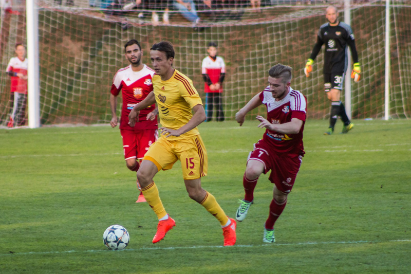 Do pohárového utkání vstoupila Dukla aktivně. V samotném úvodu přebral Néstor soupeřovi míč a individuální akcí se dostal až k šestnáctce, odkud vystřelil k pravé tyči. Gólmana Krubu ovšem nepřekonal. Následovaly další dvě střely, nejprve Néstora potom Hanouska, ale v obou případech letěl míč nad branku. Domácí hrozili také, po pravé straně se míč ve dvou případech dostal k Mezlíkovi, který v obou příležitostech zamířil na vzdálenější tyč, branku však netrefil. Hanousek si ve 13. minutě navedl míč na střed hřiště a přihrál Néstorovi, který chtěl nejprve překonat brankáře lobem, ale to se mu nepovedlo, jeho druhý pokus vykopl na brankové čáře Šimáček. Největší šance domácích přišla ve 23. minutě. Velké Meziříčí se dostalo do přečíslení a výsledkem byl naprosto volný Demeter, který z vápna trestuhodně přestřelil. Dukla pak mohla skórovat po akci Kovaľ – Manzia, kdy konžského útočníka vychytal domácí brankář. Následně Čajič poslal míč skrz obranu Olayinkovi, sám před brankářem se ovšem ani on neprosadil. Faul na Kovaľa znamenal jeden z dalších přímých kopů, z kterého zakončil Hanousek do levé šibenice, kterou brankář skvěle vychytal. Na závěr poslal přesný centr Miloševič na Néstora, který sklepl do vápna Kovaľovi, ale i jeho rána z první zůstala v rukou brankáře.