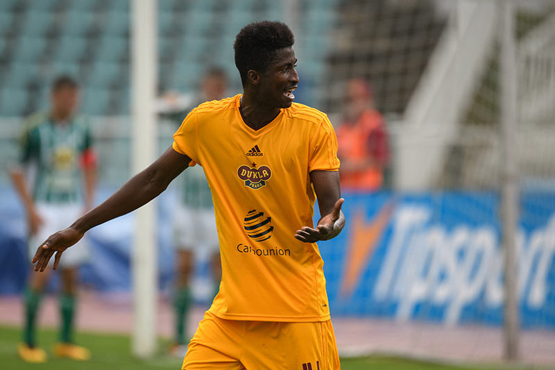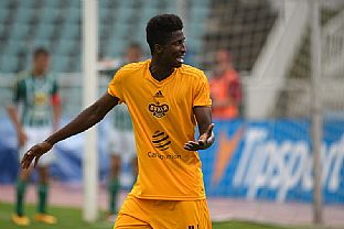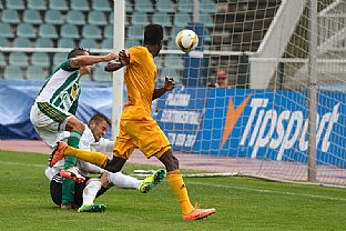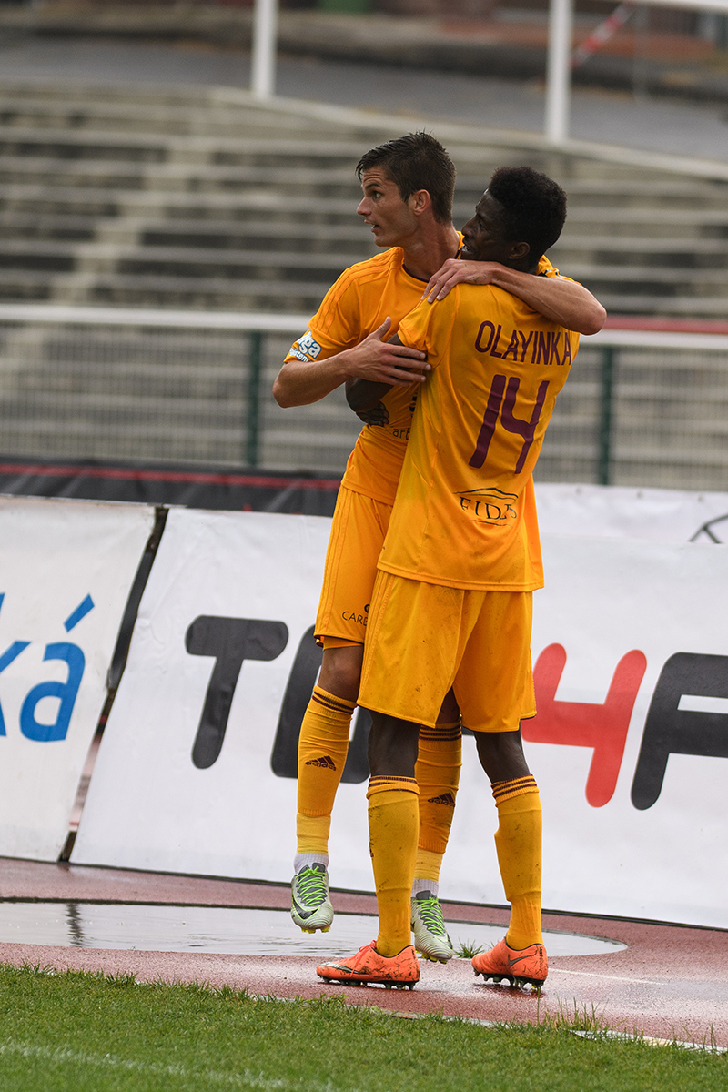 Ve 13. minutě přerušil Olayinkovu gólovou radost zvednutý praporek pomezního. Hned z protiútoku udeřili hosté. Na centrovaný míč z levé strany si naskočil Dominik Mašek a otevřel skóre utkání. Vedení Bohemky netrvalo příliš dlouho. Na Hanouskovu kolmici si naběhl Čajič, který ve vápně přihrál pod sebe PETERU OLAYINKOVI, jenž prostřelil Budinského. Před koncem prvního poločasu viděl červenou kartu hostující Milan Havel za stažení unikajícího Jurošky. Z následného přímého kopu těsně přestřelil Dominik Preisler.