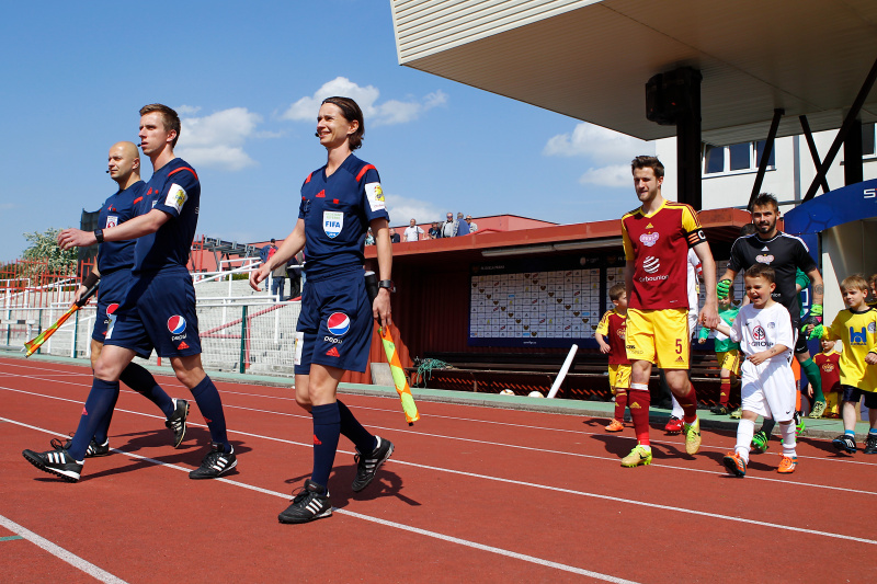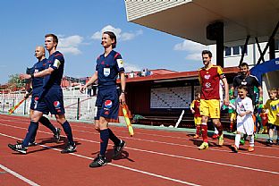 Z úvodních minut utkání pobavil diváky nejvíce Filip Rada svojí odvážnou kličkou proti napadajícímu Divišovi, za kterou si vysloužil aplaus. Ve 22. minutě zahrávali fotbalisté Slovácka standardní situaci ze zajímavé pozice, ale domácího gólmana ohrozit nedokázali. Rada musel o chvíli později zasahovat proti střele Havlíka, který mířil na vzdálenější tyč domácí brány. První větší příležitost ke skórování na straně Dukly se odehrála ve 37. minutě. Hanouskově střele zpoza pokutového území scházely přibližně dva metry.