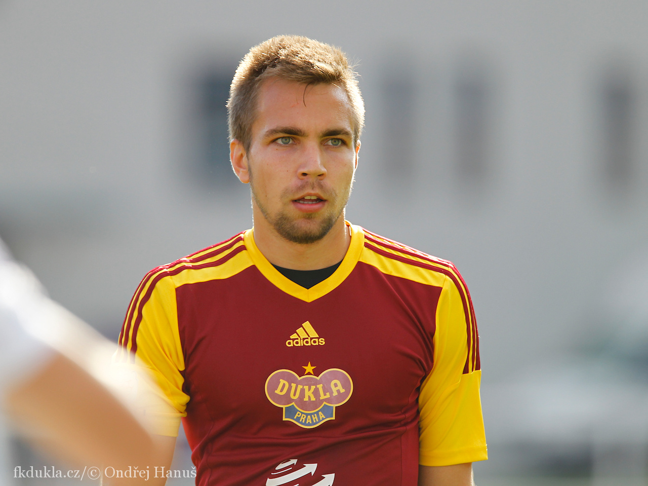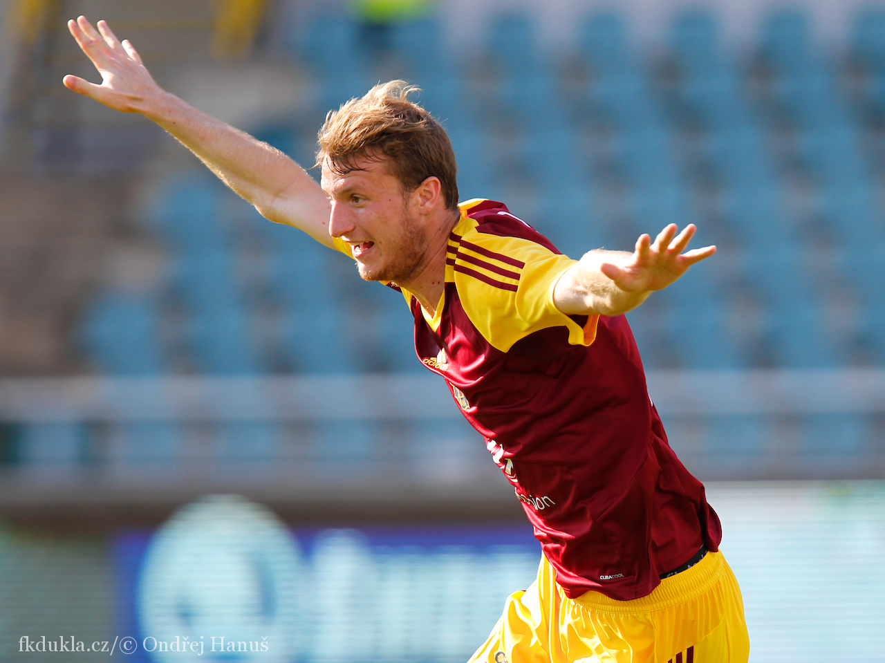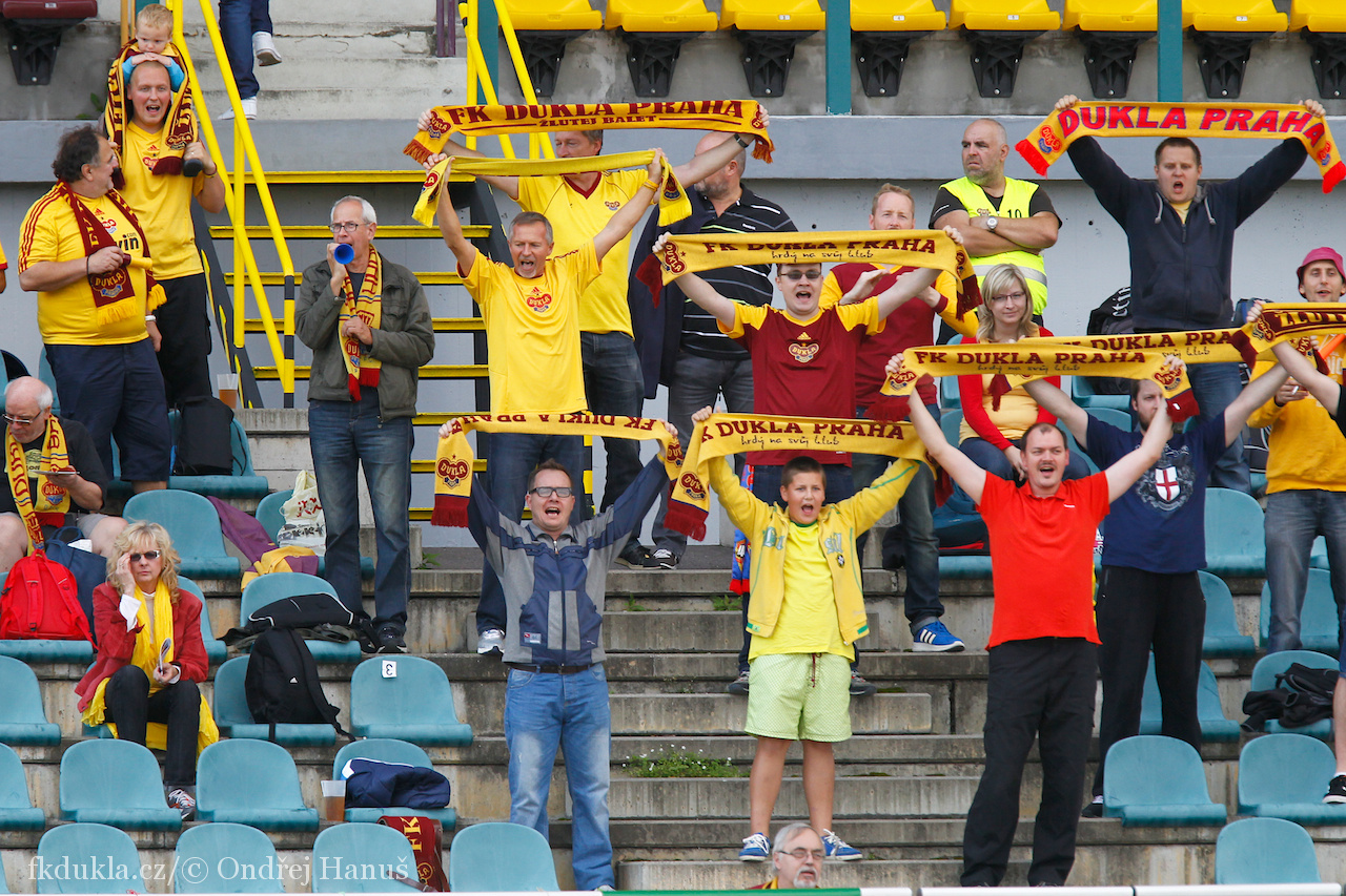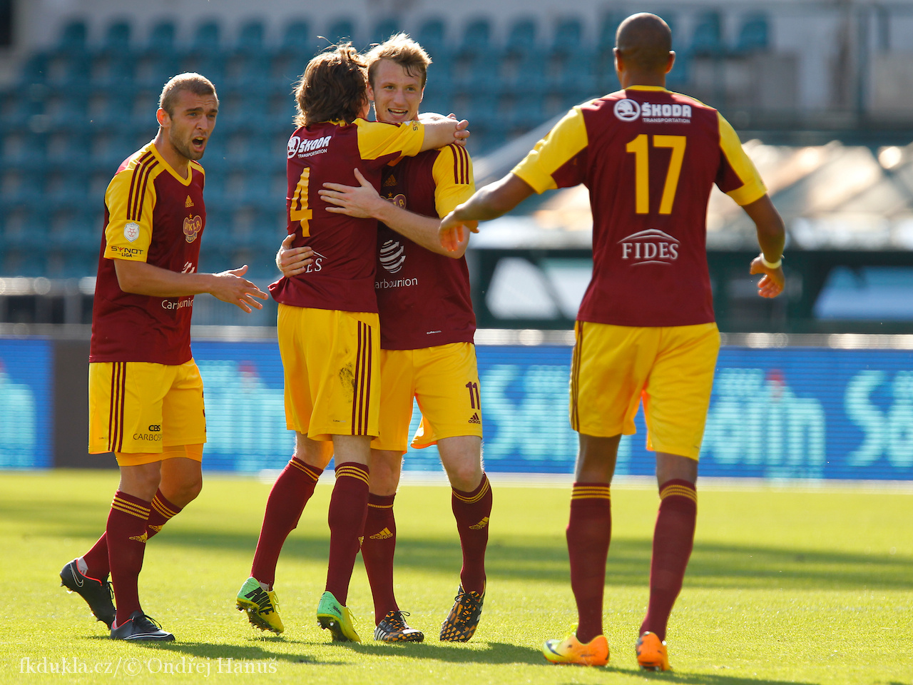 Vlažný začátek přerušila akce Dukly, Michael Krmenčík dostal krásnou přihrávku ze středu hřiště a poslal centr na nabíhajícího J.D. Beauguela, díky zásahu Krejčího šel míč nad bránu a kopal se rohový kop. O pár minut později se už celá tribuna radovala, po nedovoleném zákroku hostí rozehrávala Dukla, míč dostal napravo Vjačeslav Karavajev, jeho vyražený centr zachytil Michael Krmenčík a poslal domácí do vedení 1:0. Další příležitost si vypracoval J.-D. Beauguel, když vystihl malou domů, byl však hodně z úhlu a míč skončil v boční síti. Ve 37. minutě prošel po pravé straně až do vápna Tomáš Berger, povedenou přihrávkou našel J.-D. Beauguela a ten navýšil krásnou patičkou na 2:0.