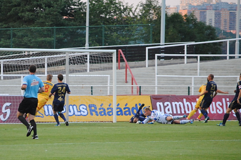 Hra se následně uklidnila, ale i nadále měla Dukla územní převahu, Sigma byla raketovým nástupem domácích zaskočena. Další smolný okamžik pro Sigmu přišel ve 26.minutě, kdy musel pro zranění střídat Plšek, kterého nahradil Šindelář . O pár okamžiků později bleskově rozehrál Petr Malý přímý kop, našel Pospěcha, který se dostal do dobré příležitosti, ovšem byl v ofsajdu.