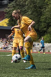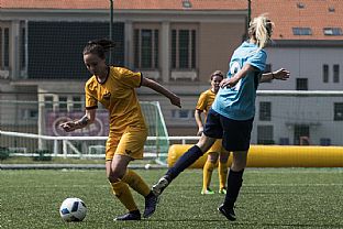 První barážové utkání se sehrálo v sobotu na Julisce. Hned z první akce udeřily hráčky Třebše. Kosinová dostala míč za obranu a se zakončením si poradila 0:1. O tři minuty později mohla odpovědět Kubálková, ale trefila břevno. Většina prvního poločasu se odehrávala uprostřed hřiště, bez nějakých vážnějších šancí. Takřka z ničeho nic se k centru dostala Veselá a důrazná Nela Houbová srovnala skóre. Další šanci měla Kubálková, ale do zakončení se na poslední chvíli nedostala. Ke konci poločasu se domácí hráčky neprosadily ani z rohového kopu a následného závaru. Poločasový výsledek tedy 1:1.