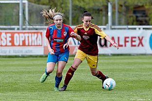 První minuty utkání patřily k překvapení všech diváků pražské Dukle. Do šance se dostala dvakrát Hrdličková, ale Holíková svůj tým podržela. Plzeň se dostala do hry až kolem dvacáté minuty, ale všechny pokusy z dálky od Kratochvílové nebo Šlajsové skončily mimo branku, případně v rukavicích Frolíkové. Jediný gól prvního poločasu padl tři minuty před pauzou z kopačky Kratochvílové, která se trefila zpoza vápna 1:0.