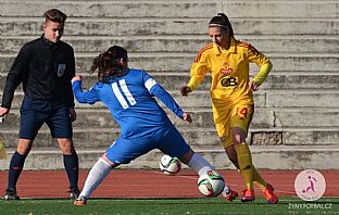 První minuty utkání patřily hostům, ale žádné jejich kombinace nevedly k ohrožení branky. Nám se nedařilo držet míč a vůbec dostat se do hry. Největší šanci měla liberecká Skálová zhruba ve dvacáté minutě, ale střela šla do tyče. My jsme zahrozili z brejku, ale Houbová nepřekonala Pižlovou. Následujících deset minut jsme měli převahu, ale všechny šance skončily v rukavicích hostující Pižlové, nebo mimo branku. Liberec se dostal do vedení v 32. minutě, kdy si do vlastní branky srazila míč Aneta Fojtíková 0:1. Poslední velkou šanci v prvním poločase měla Brázdová, ale vysoko přestřelila.